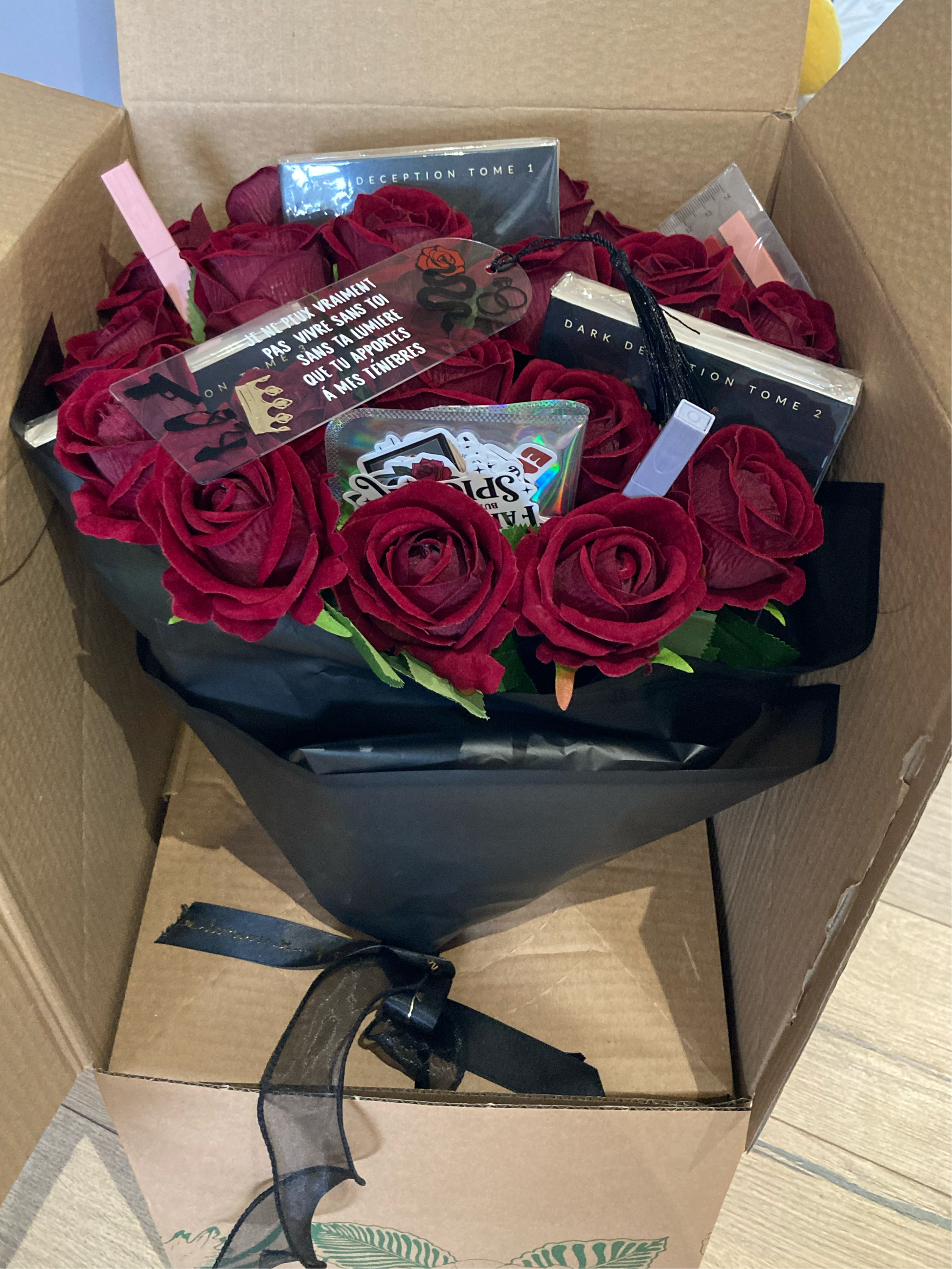 Offrez un cadeau unique et qui fera son effet à coup sûr ! Le bouquet est personnalisable avec le livre de votre choix, enveloppé dans un écrin de mystère. Accompagné d'accessoires : marque-page personnalisé, kit d'annotation, stickers, surligneurs dans le thème de votre livre.